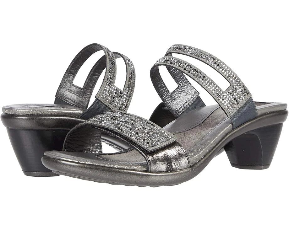 Go for mood-enhancing style this weekend and create the look you love with the Temper sandal by Naot®.SKU: #9473388Metallic leather upper with rhinestone detailing.Easy slip-on.Leather lining.Anatomic cork and latex footbed is wrapped in pampering suede and molds to the shape of the foot with wear.Block heel and polyurethane outsole. Imported.Product measurements were taken using size EU 37 (US Women’s 6), width M. Please note that measurements may vary by size.Measurements: