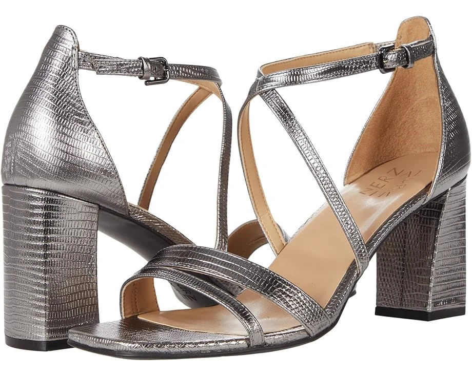 The Naturalizer® Tiff heels offer a comfortable and elegant look that can be dressed up or down.SKU: #9593284The strappy leather vamp boasts a square toe silhouette, open toe design, buckle ankle strap, and heel cup.Faux leather lining and padded footbed.Wrapped block heel with durable non-slip synthetic outsole.Imported.Product measurements were taken using size 9, width M (B). Please note that measurements may vary by size.Measurements: