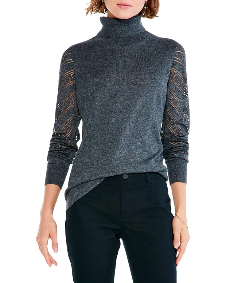 Flex a casual and comfy vibe wearing NIC+ZOE™ Pointelle Turtleneck Sweater Tee.SKU: #9854747Regular fit.Midweight.Pullover style.Turtleneck.Pointelle stitch long sleeves with cuffs.Sits at hip.60% cotton, 40% viscose.Hand wash, dry flat.Imported.Inseam length: Missy: 24 in.