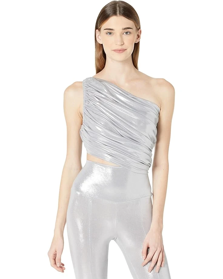 Elevate your style in the KAMALIKULTURE by Norma Kamaliâ„¢ Diana Bra top featuring a fitted silhouette, flattering ruching, and a solid colorway on a lined stretch-poly fabrication. SKU: #9458492One-shoulder top boasts an asymmetrical neckline and a cropped hemline. 97% polyester, 3% spandex.