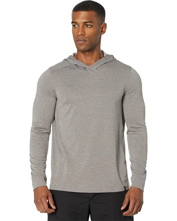 The primary materials that compose this product contain a minimum of 20 percent recycled content.SKU: #9573102Lightweight and ready to accompany you on your next trek, the prAna® Sol Defender Hoodie features moisture-wicking properties and UPF 30+ sun protection.Pullover sweater with attached hood, straight hem, and full-length sleeves with rib-knit trim.Woven label at lower left hem.100% recycled polyester.Machine washable.Imported.Product measurements were taken using size MD. Please note that measurements may vary by size.Measurements: