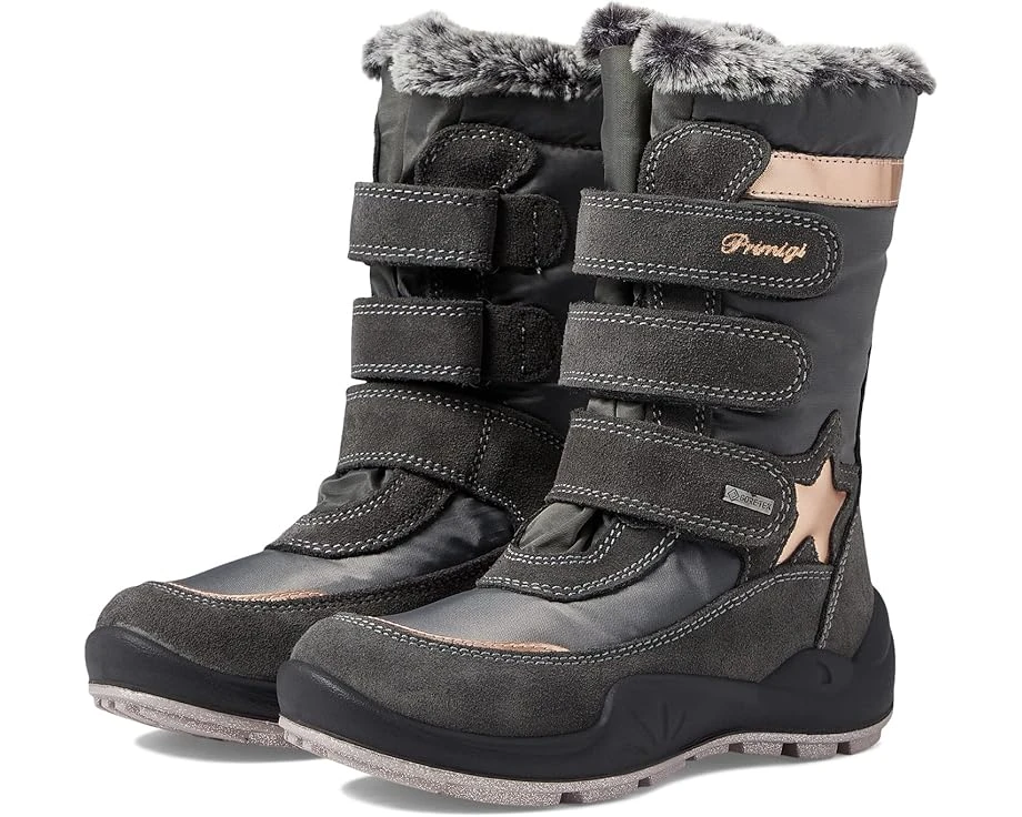 Slay the style game with every step you take wearing Primigi® Kids 28777 Boots.SKU: #9800841Leather and textile upper.Textile lining and insole.Mid-calf length.Three-strap hook-and-loop closure.Brand logo on straps.Star accent on side upper.Faux fur trim.Almond toe.Synthetic outsole.Imported.Product measurements were taken using size 30 (US 12 Little Kid), width M. Please note that measurements may vary by size.Measurements: