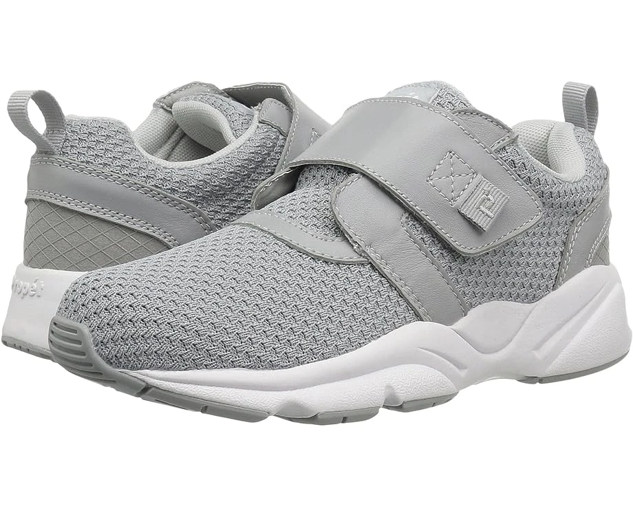 For all-day comfort choose the Propet® Stability X Strap; designed to keep you going.SKU: #8977086Breathable mesh and leather uppers in a low-profile silhouette.Front strap features an adjustable hook-and-loop fastener.Padded tongue and collar.Brushed nylon lining wicks away moisture to keep your feet dry.Internal and external heel counters offer added support and stability.Removable PU insole with a gel heel pad and cushioning ridges provide all-day comfort.Lightweight, molded EVA midsole for additional shock absorption to reduce foot fatigue.Built-in contoured heel stabilizer and a wide unit sole for sure footing.Durable rubber outsole is specially designed to deliver superior traction and grip.Imported.Product measurements were taken using size 9.5, width N (AA). Please note that measurements may vary by size.Measurements: