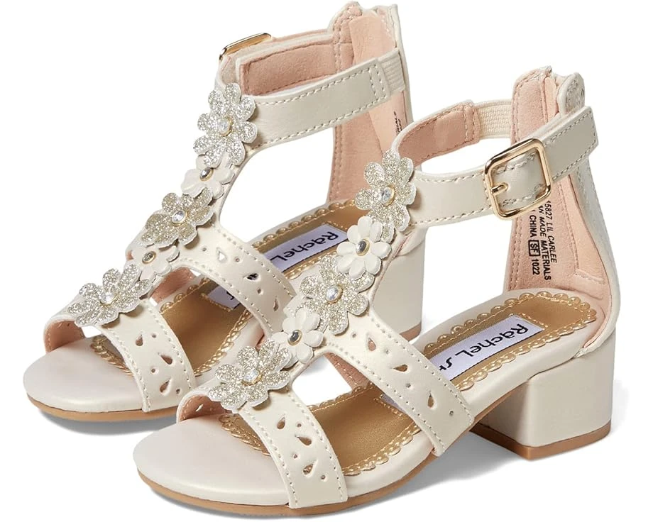 Let your little one feel like a princess by wearing Rachel Shoes® Lil Carlee Heels.SKU: #9861010Man-made upper.Man-made lining and insole.Open round toe.Intricate detailing on upper.Zipper and hook-and-loop closure.Brand logo on insole.Block heel.Imported.Product measurements were taken using size 6 Toddler, width M. Please note that measurements may vary by size.Measurements: