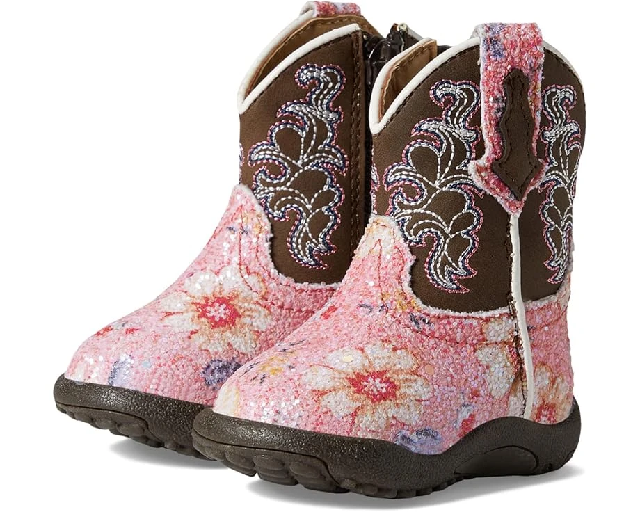 Let your little one take every step in a cute style wearing Roper® Kids Cowbaby Glitter Flower Boots.SKU: #9855297Man-made upper.Man-made lining and insole.Curved top.Zipper closure.Pull straps.Elaborate design on upper and shaft.Round toe.Man-made outsole.Imported.Product measurements were taken using size 1 Infant, width M. Please note that measurements may vary by size.Measurements: