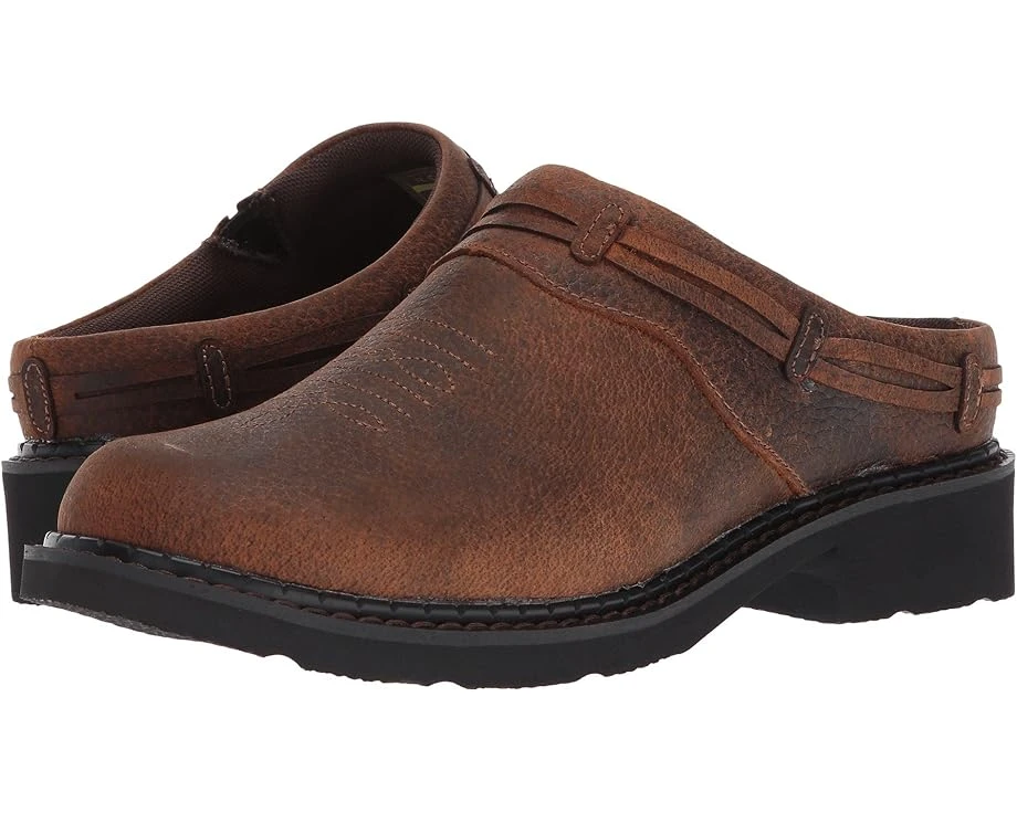 Enjoy the lovely Western detail of the Roper® Laces mule!SKU: #8864621Round toe.Crazy Horse leather upper.Features fancy leather lacing design on vamp. Single welt stitching.Cushioned textile footbed for excellent underfoot comfort.Chunky heel.Riderlite lightweight blown rubber outsole.Imported.Product measurements were taken using size 9, width M. Please note that measurements may vary by size.Measurements:
