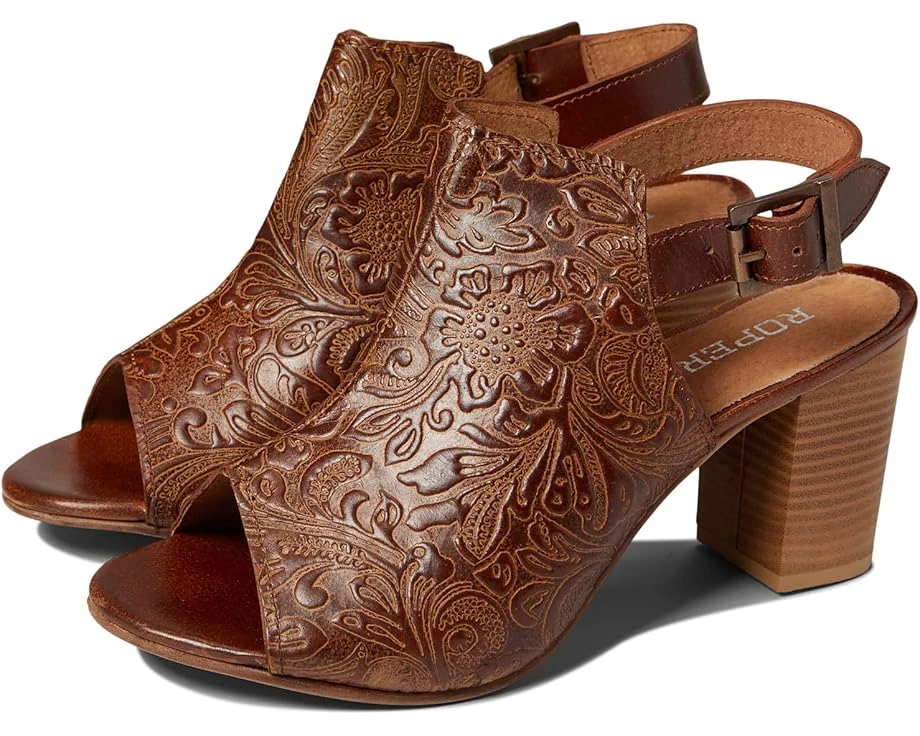 A noteworthy display of unique craftsmanship and on-trend fashion, the Roper® Mika II Heels are sure to turn some heads.SKU: #9846548Floral embossed leather upper.Leather linings and insoles. Cushioned footbed.Adjustable buckle closure on the ankle strap.Peep toe silhouette.Stacked block heel.Man-made outsole.Imported.Product measurements were taken using size 9, width B – Medium. Please note that measurements may vary by size.Measurements: