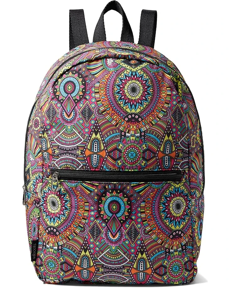 Verified vegan construction.SKU: #9819307The primary materials that compose this product contain a minimum of 20 percent recycled content.Featuring a colorful artwork on the exterior and a roomy interior, the Sakroots® On The Go Packable Backpack makes a stylish but practical choice for your busy days.Crafted from REPREVE® polyester which is durable, water-resistant, and stain-resistant.Zippered closure.One interior back wall zippered pocket.One exterior front zippered pocket.Adjustable webbing back straps.One top carry handle.Comes with a packable bag.Imported.Measurements: