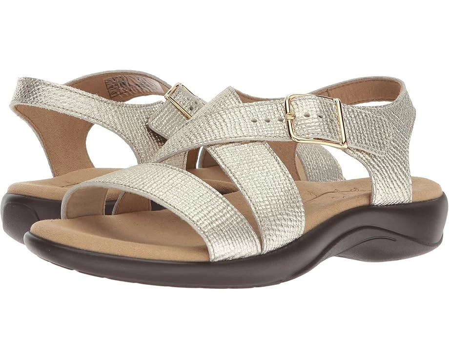 Sunny days and blissful nights await with the Laguna sandals from SAS®.SKU: #9570028Embossed leather uppers with an open toe.Adjustable buckle closure.Soft and breathable microfiber linings.Offers a cushioned and shock-absorbing footbed that hugs and supports the natural curves and arches of your feet.All Day Comfort Sole offers a wide base for increased stability and maximum shock-absorption.Made in the U.S.A.Product measurements were taken using size 9, width WW – Double Wide (D). Please note that measurements may vary by size.Weight of footwear is based on a single item, not a pair.Measurements: