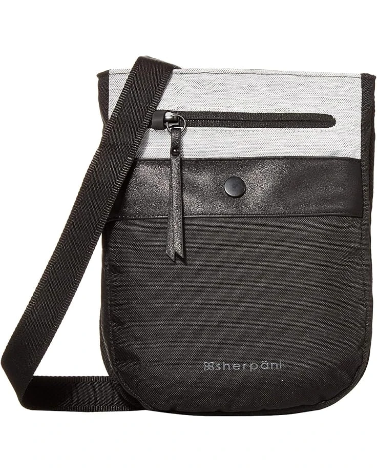 Keep your essentials organized and easy to access with the streamline design of the Prima AT bag from Sherpani™.SKU: #9269276AT (anti-theft) collection features zipper locks, anti-slash bottom and strap, chair loop lock system and RFID protection.Main compartment stores your wallet, e-reader and a few small cosmetics.Polyester construction with vegan leather trim and detailing.Features 30 denier ripstop silicone coated paneling.Decorative exterior embroidery. Soft, adjustable crossbody strap.Two front zip pockets to securely store your small accessories.Open pocket on back lets you easily slip in your keys or cell phone.Convenient key fob.Signature Sherpani floral lining.Top zip closure.• Body and trim: 100% vegan leather