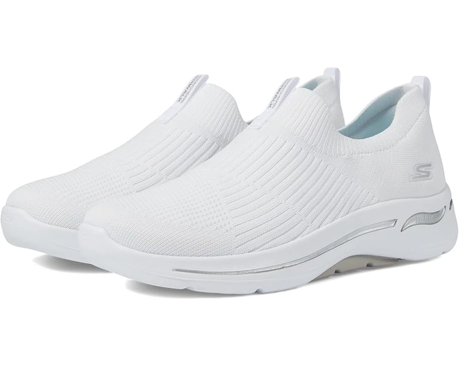 The SKECHERS® Go Walk Arch Fit Iconic sneaker will make every walk a comfortable one with a stretch knit fabric upper, slip-on entry, and a machine washable design.SKU: #9442639Woven-in knit textured panels at toe, heel, and instep panel for added structure.Rear pull-tab offers easy entry.Tonal collar and heel panel.Signature logo accents at the side panel and heel stripe.Breathable fabric lining.Lightweight, responsive ULTRA GO™ cushioning.Breathable Air Cooled Goga Mat™ insole provides high-rebound cushioning.OrthoLite® foam technology insole layer provides long-term cushioning and high-level breathability.Midsole boasts an external heel stabilizer.Durable synthetic outsole.Imported.Product measurements were taken using size 8.5, width B – Medium. Please note that measurements may vary by size.Measurements: