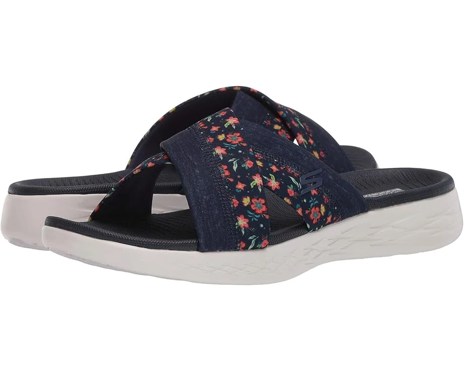 The SKECHERS® Performance On-The-Go 600 sandal will complement your effortlessly chic summer style with wide crisscrossing vamp straps, easy slip-on styling, and a woven, mixed print finish.SKU: #9365845Fabric upper material.Open-toe silhouette.Signature logo tag at the instep.Breathable fabric strap lining.Goga Mat® contoured comfort footbed provides long-lasting wear.Features high-rebound cushioning with responsive feedback.5GEN® midsole with proprietary lightweight injection-molded compound offers memory retention that helps absorb impact.Multi-directional traction sole.Imported.Product measurements were taken using size 10, width B – Medium. Please note that measurements may vary by size.Measurements: