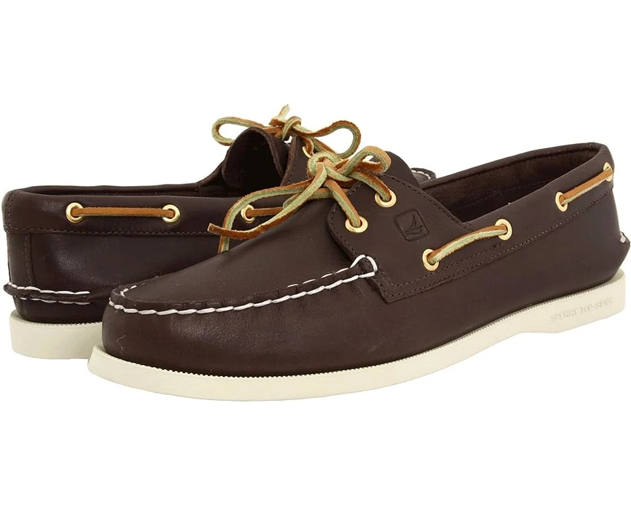 Genuine handsewn tru-moc construction the Sperry® A/O 2 Eye will become your go to!SKU: #7212450Choose from slightly buffed, tanned and oiled leather, or canvas upper.Shearling styles feature an interior lined with faux shearling.Rustproof eyelets with fully functional, rawhide laces for an adjustable, secure fit.Perfed dri-lex sock covers a shock-absorbing heel cup, providing additional cushioning and comfort.Non-marking rubber outsole with razor cut Wave-siping™ for ultimate wet/dry traction.Product measurements were taken using size 8.5, width M (B). Please note that measurements may vary by size.Weight of footwear is based on a single item, not a pair.Measurements: