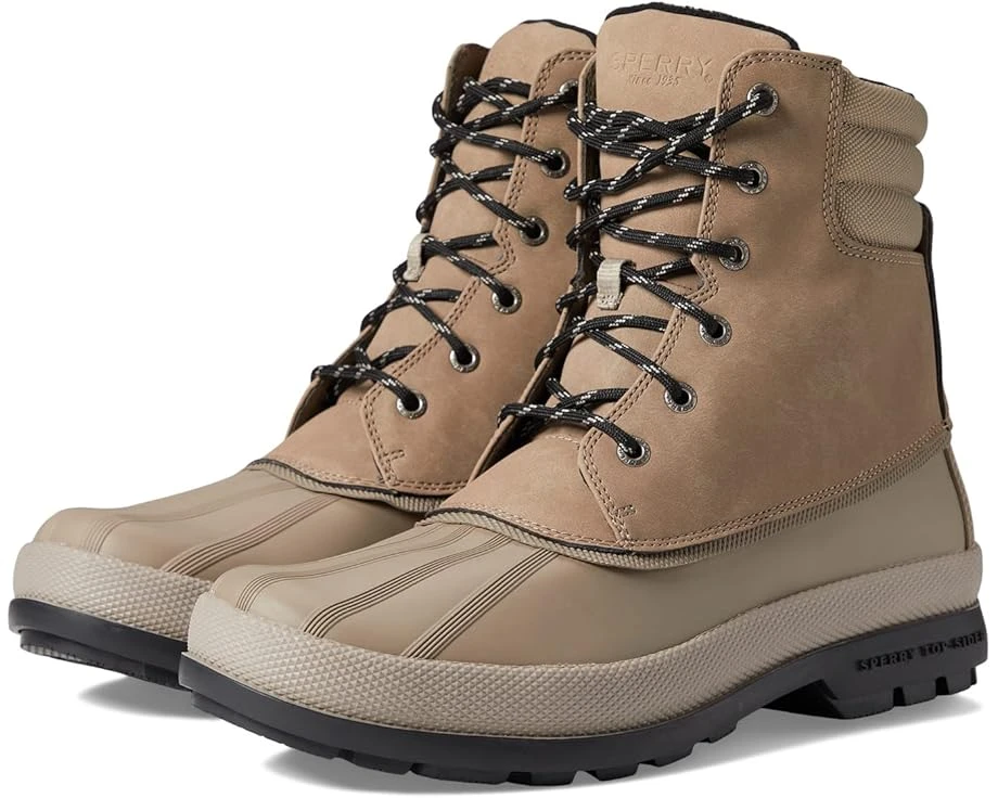 Elevate your cool-weather looks with the comfort and protection of the Sperry® Cold Bay boot.SKU: #9529904Duck boot silhouette with full-lace closure.Stain-and-water-resistant leather upper with padded textile collar. Nylon laces and metal eyelets with top D-ring for secure fit.Breathable textile lining with Thinsulate™ lined shaft for added warmth.Removable, cushioned textile insole.Razor-Cut Wave-Siping™ on non-marking rubber outsole.Imported.Product measurements were taken using size 8.5, width M (D). Please note that measurements may vary by size.Measurements: