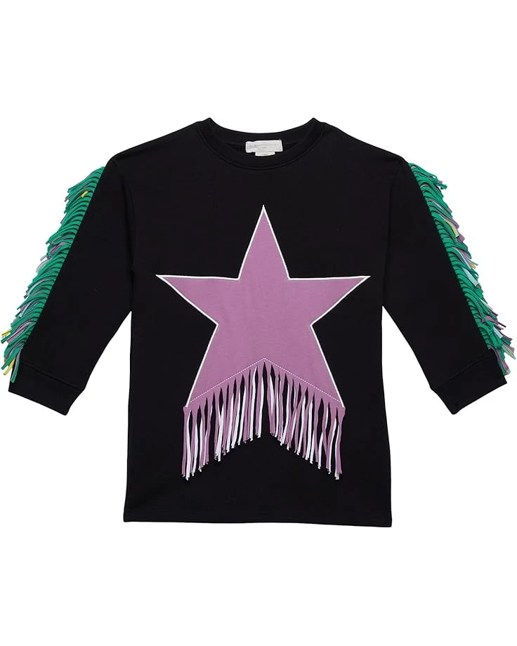 The primary materials that compose this product contain a minimum of 20 percent organic content.SKU: #9827092Your little one will look all fancy and cute by wearing the Stella McCartney® Kids Dress with Star Patch and Fringes Dress.Regular fit.Pullover construction.Crew neckline and long sleeves.Oversized star-shaped patch on the front.Fringe detailing on the arms and patchwork. Straight hemline.100% organic cotton. Machine wash, tumble dry.