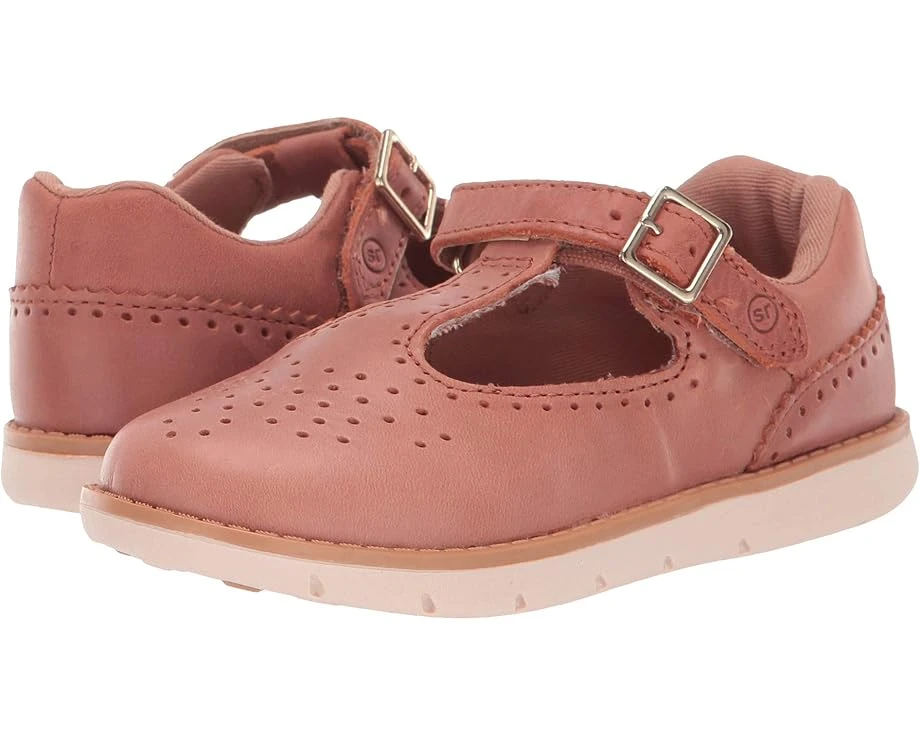 Memory foam insoles, flexible design, enhanced traction and a fun faux-buckle design give these leather Stride Rite® SRT Nell (Toddler) Mary Jane flats a comfortable yet sturdy foundation for feet, enabling toddlers to walk steady on their own. SKU: #9237644Hook-and-loop closure for easy on and off.T-Strap construction and padded comfort collar.Organic canvas linings Molded leather footbed.Patented stretch sensory pods.APMA approved.Flexible rubber outsole.Imported.Product measurements were taken using size 8 Toddler, width M. Please note that measurements may vary by size.Weight of footwear is based on a single item, not a pair.Measurements: