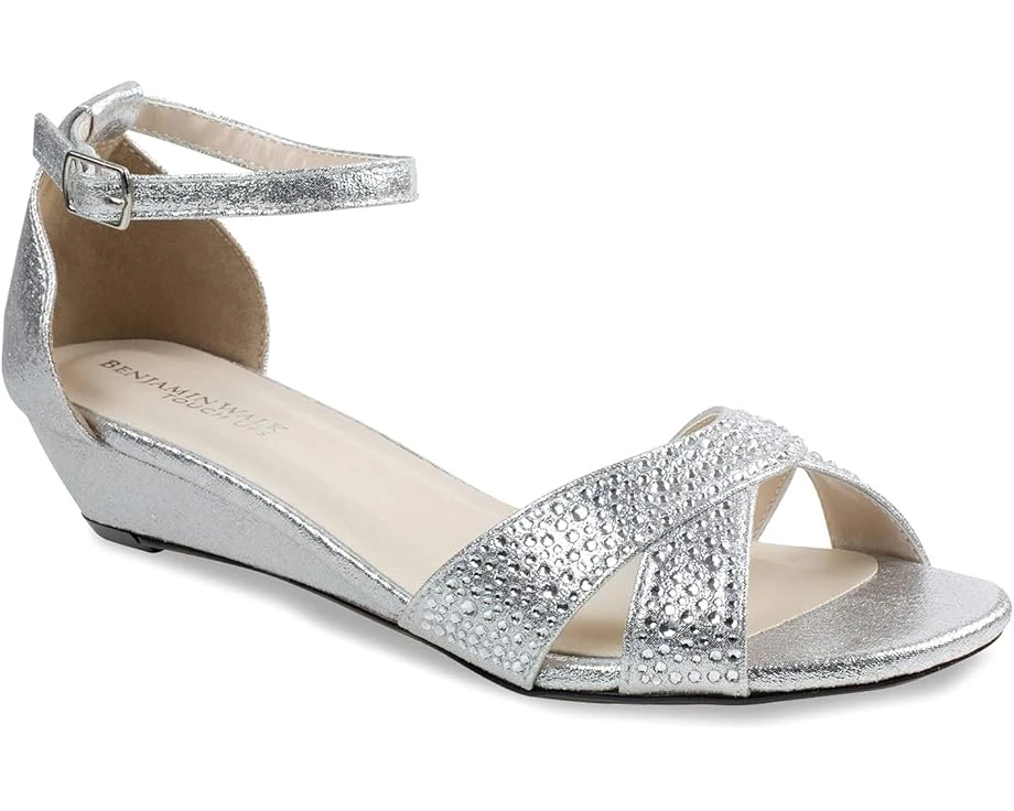 Steal all the attention with your irresistibly gorgeous look by wearing the Touch Ups® Iris sandals. SKU: #9868956Glossy polyurethane upper. Breathable synthetic lining and EVA insole. Adjustable buckle closure on the ankle strap. Open, round toe silhouette. Crisscross straps on the vamp with rhinestone embellishments. Closed-back design for added support. Low wedge heel. Durable TPR outsole. Imported. Weight of footwear is based on a single item, not a pair.Measurements: