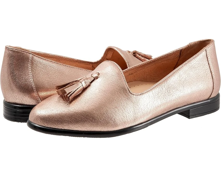 Spruce up your look wearing the chic and classy Trotters® Liz Tassel Loafers, perfect for special occasions! SKU: #9900226Metallic leather upper. Man-made lining.Slip-on style. Tassel detail on the vamp. Almond toe. Leather footbed. Memory foam midsole for utmost comfort. Rubber outsole. Imported. Weight of footwear is based on a single item, not a pair.Measurements: