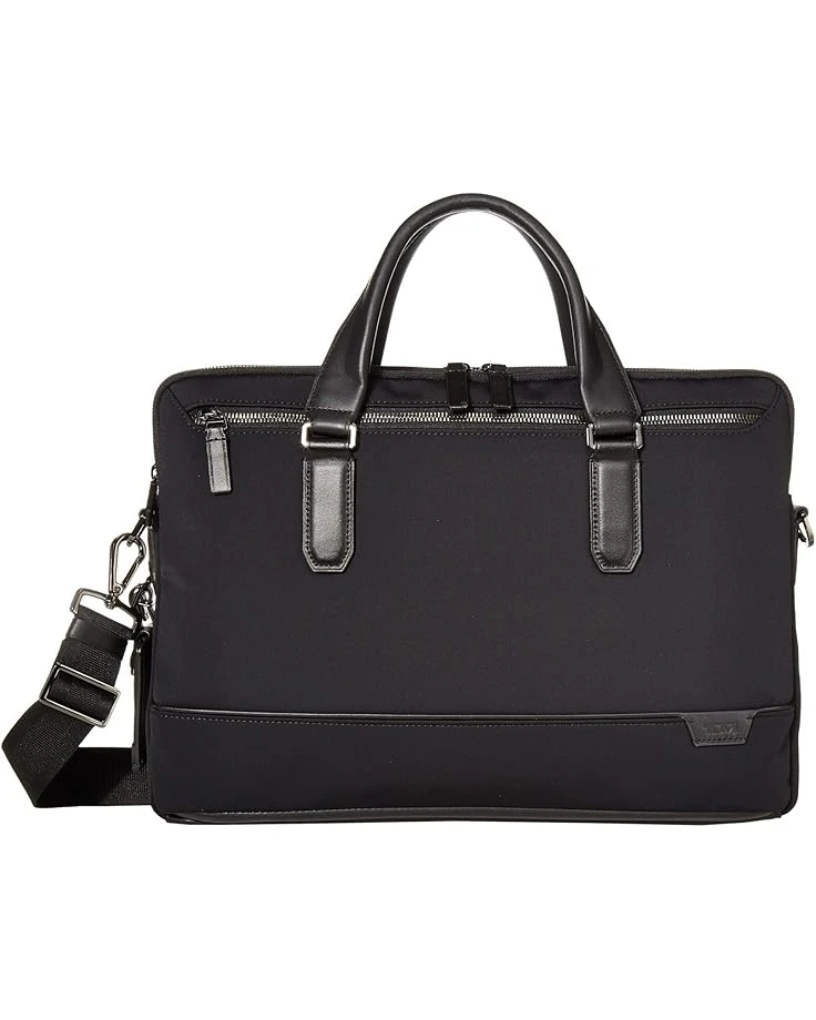 The Sycamore Brief is part of the Tumi® Harrison Collection.SKU: #9409253The sleek look of the Tumi® Sycamore Slim Brief maintains a minimalist profile while still managing to carry all the essentials of your day-to-day workload without adding any unnecessary bulk. The commuter bag is crafted from a nylon exterior and features luxe leather trims throughout and has a removable adjustable crossbody strap. Padded laptop compartment can accommodate up to a 14 inch laptop.Dual leather handles.