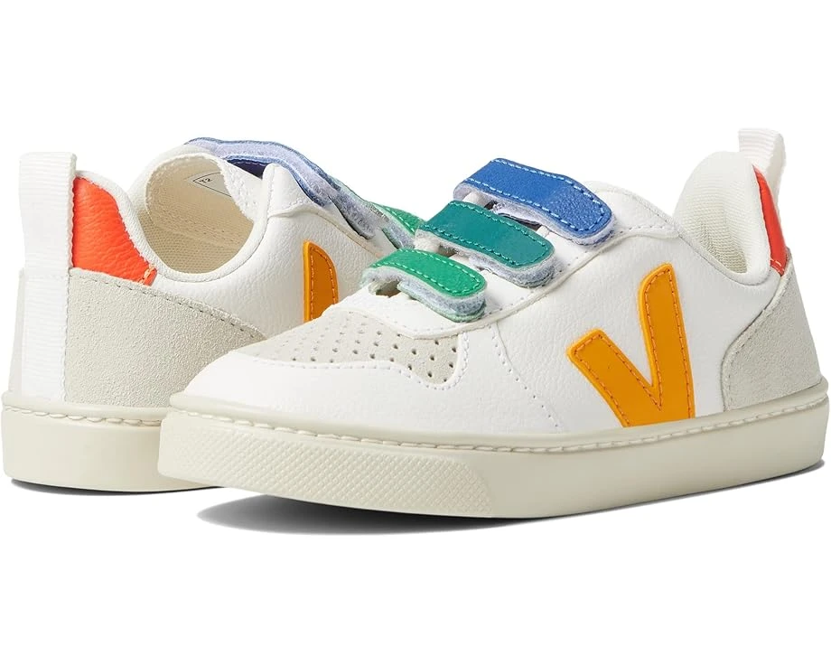 Bring a playful style to your kid’s wardrobe with the VEJAâ„¢ Kids Small V-10 Velcro shoes.SKU: #9784251Leather upper.Textile lining and insole.Removable insole.Adjustable hook-and-loop straps offer easy-on styling.Colorful pops of color add an attractive touch.Loop tab on the back.Perforated detailing on the round toe.Padded collar and signature detailing on the footbed.Synthetic outsole.Imported.Weight of footwear is based on a single item, not a pair.Measurements:
