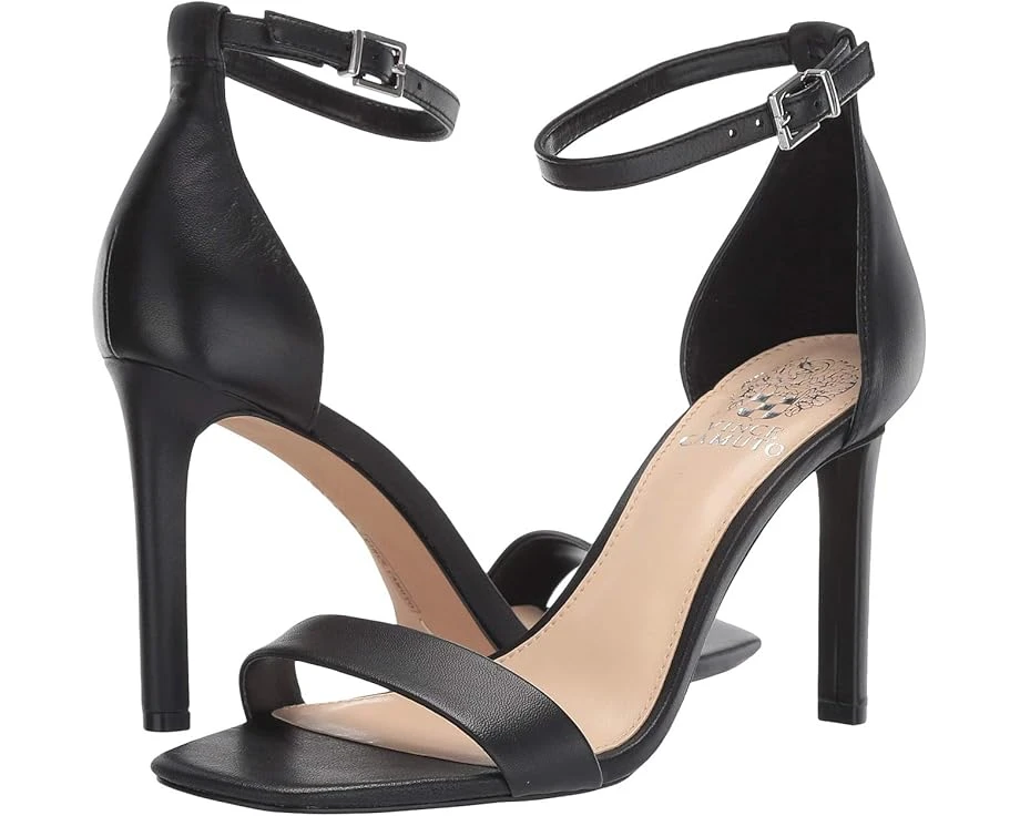Simple, minimal and oh-so-chic! The versatile Vince Camuto® Lauralie sandal is constructed from a premium upper in a minimalist design for timeless wear. SKU: #9714326Rounded square, open-toe silhouette.Narrow halo ankle strap with adjustable buckle. Synthetic lining and insole. Lightly padded, fixed footbed. Wrapped stiletto heel. Synthetic outsole. Imported.
