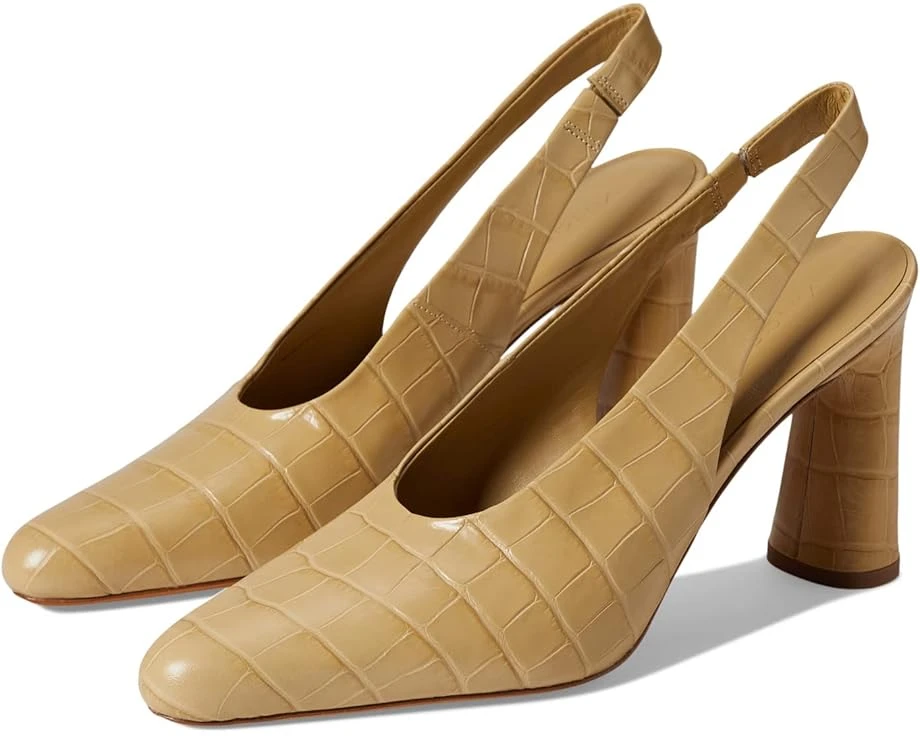 From formal outings to romantic evenings, the Vince ® Hellen pumps keep your look sleek and gorgeous, no matter what the occasion is!SKU: #9818249Croc-embossed leather upper. Leather lining. Easy slip-on style with stretchable slingback strap for added support. Closed toe silhouette. High block heel. Durable leather outsole. Imported. Product measurements were taken using size 9, width M. Please note that measurements may vary by size.Measurements: